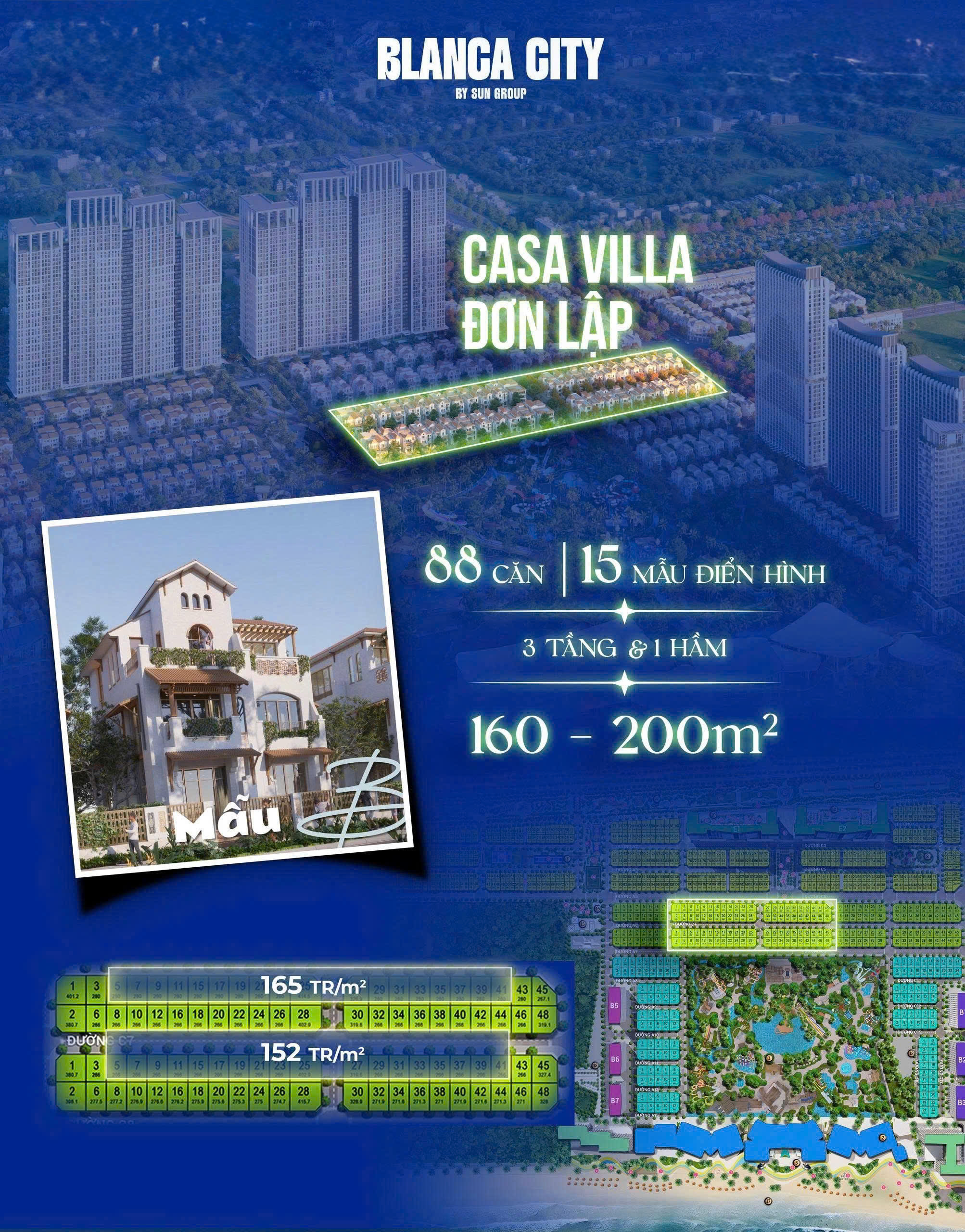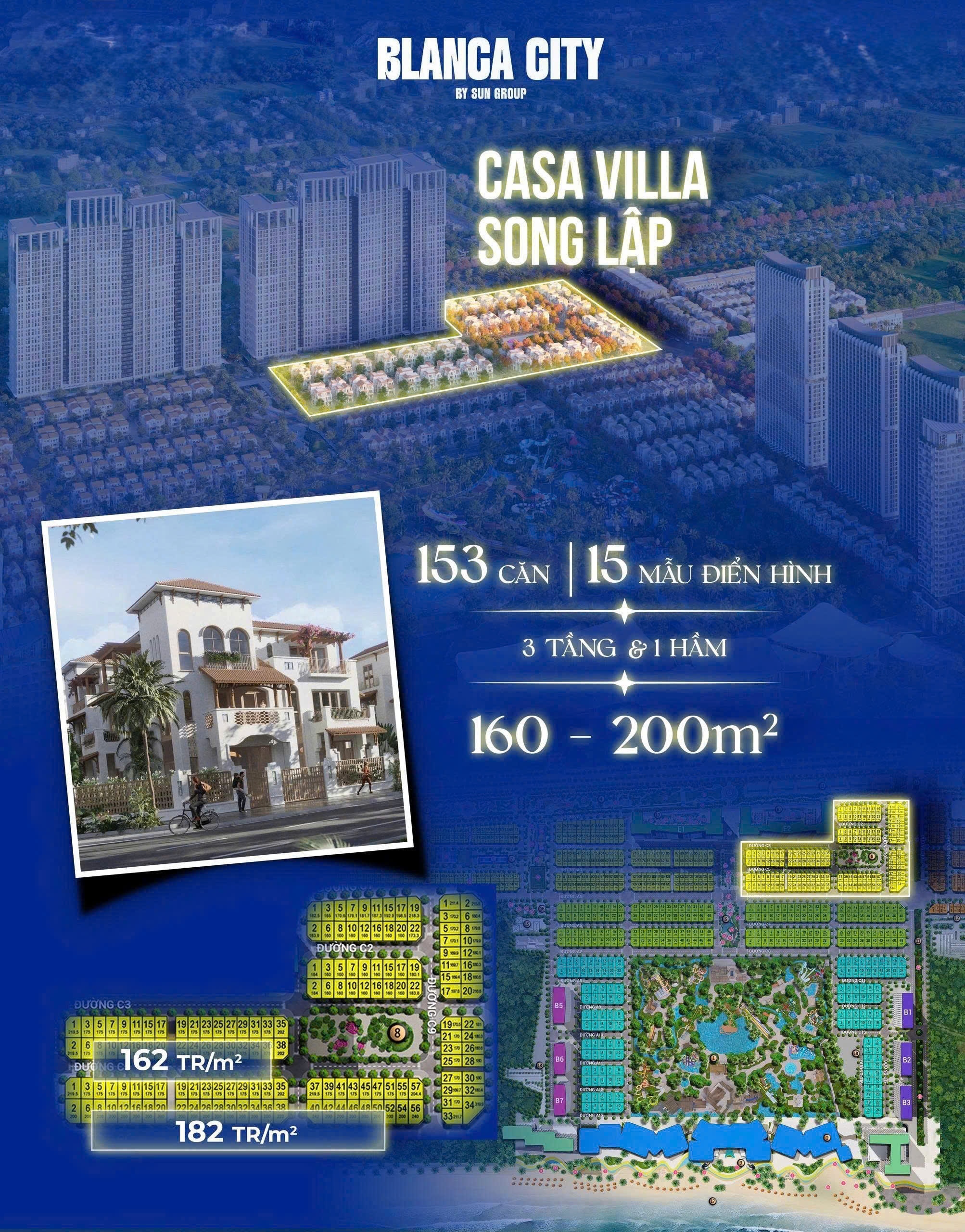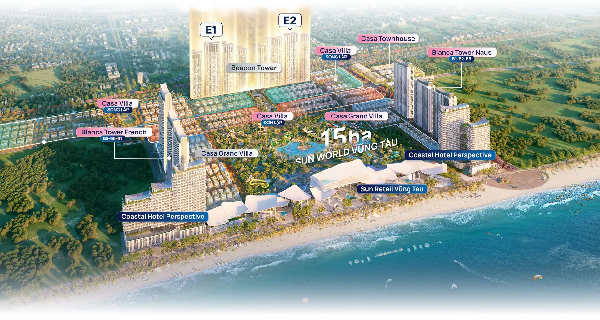 Blanca City sở hữu vị trí kim cương ngay trung tâm biển Bãi Sau, trên quỹ đất mặt biển lâu dài hiếm hoi tại Vũng Tàu. Dự án kiến tạo đô thị biển all-in-one đẳng cấp, hội tụ căn hộ cao cấp, nhà phố, biệt thự, trung tâm thương mại ven biển, chuỗi khách sạn quốc tế và công viên nước Sun World lần đầu tiên xuất hiện tại thành phố biển.